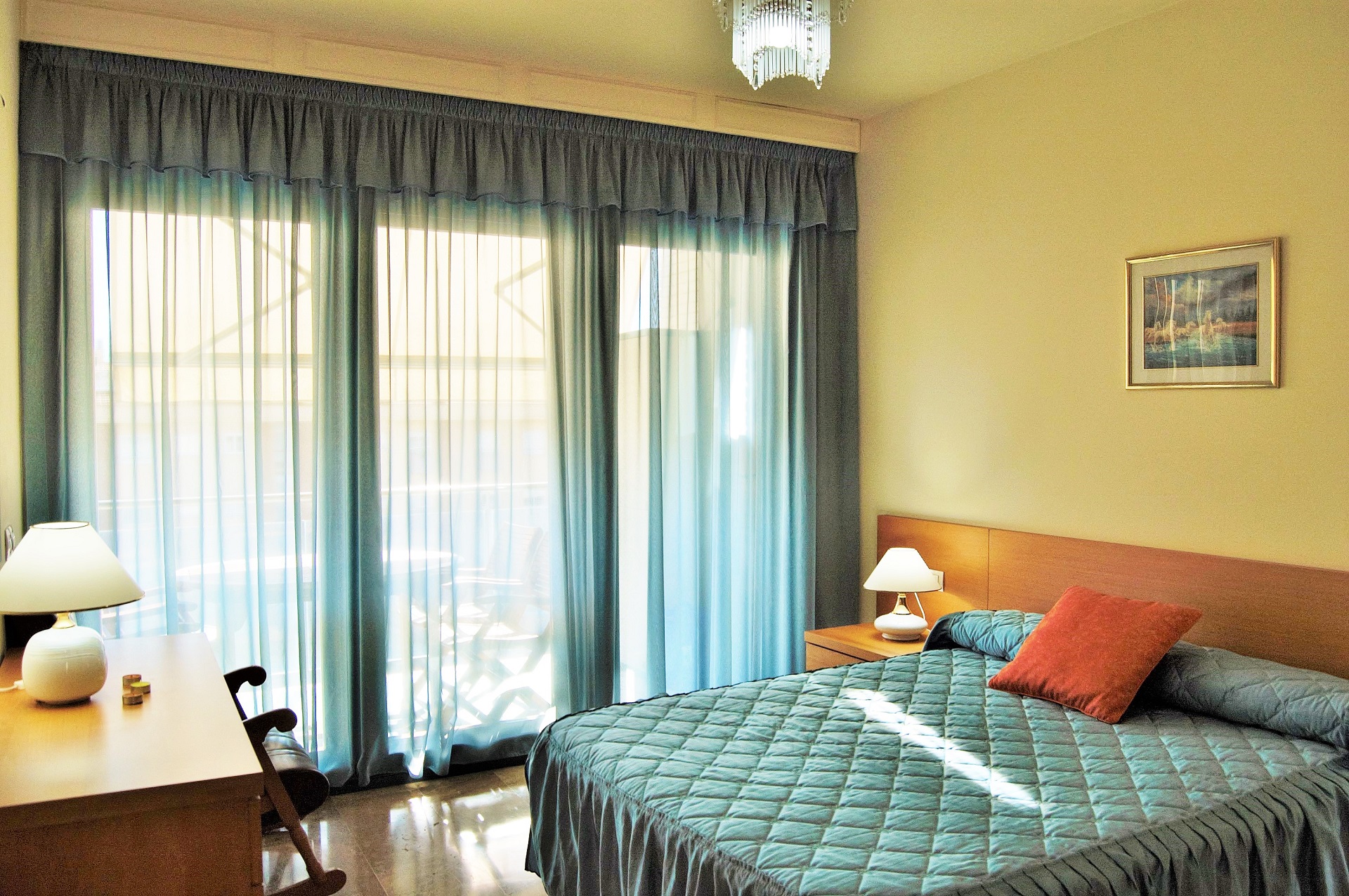El apartamento está ubicado en la cuarta planta, las ventanas que dan a la calle están equipadas con doble cristal para evitar el ruido del exterior.
