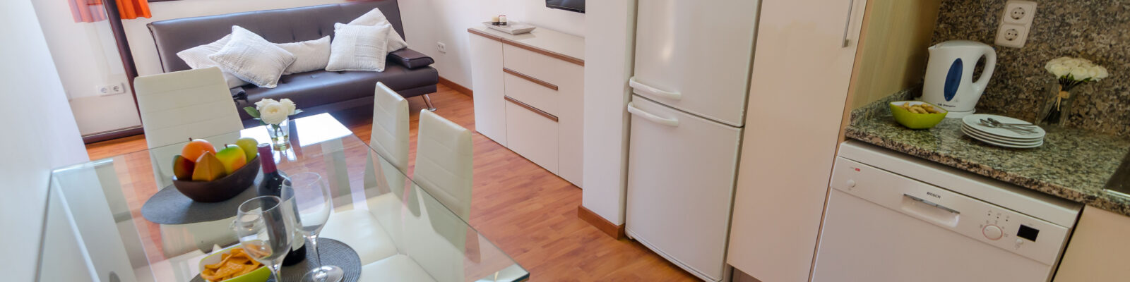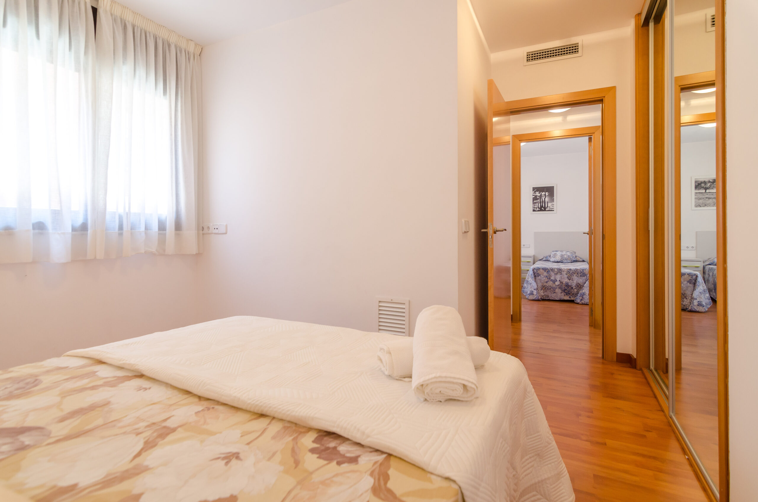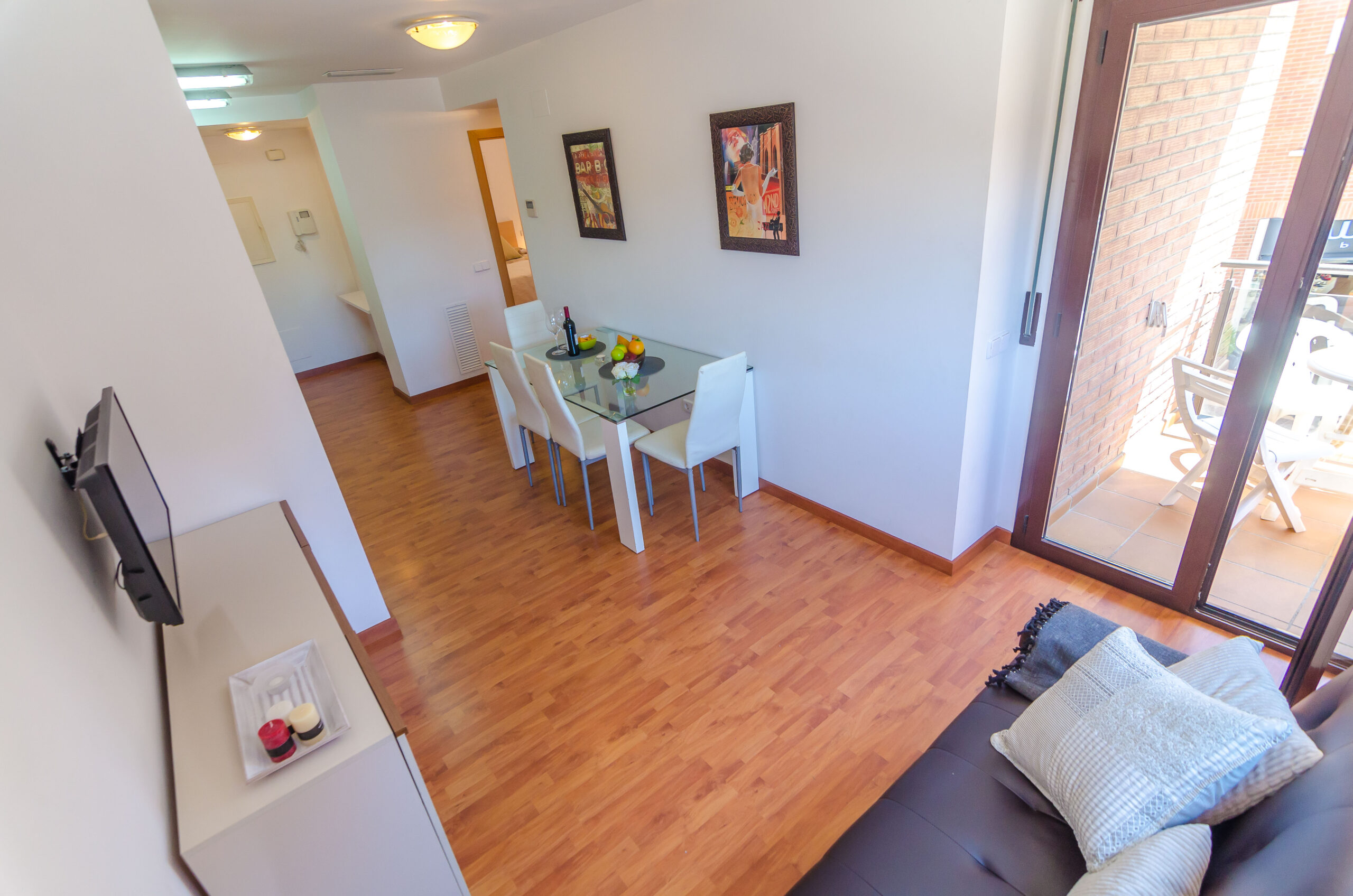 Dispone de salón comedor, cocina americana totalmente equipada con horno, microondas y lavadora. Consta de dos dormitorios, uno con cama doble y otro con dos camas individuales, además de un sofá cama individual ubicado en el salón. Y cuarto de baño completo.