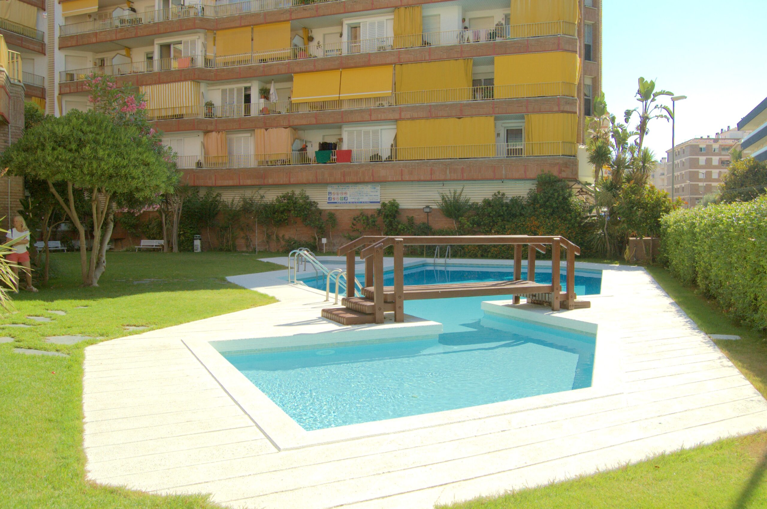 Bonito apartamento en la zona de Fenals, cuenta con dos dormitorios dobles, baño completo con plato de ducha, sala de estar con salida a terraza con vistas a la ciudad y a la piscina. Cocina completamente equipada.