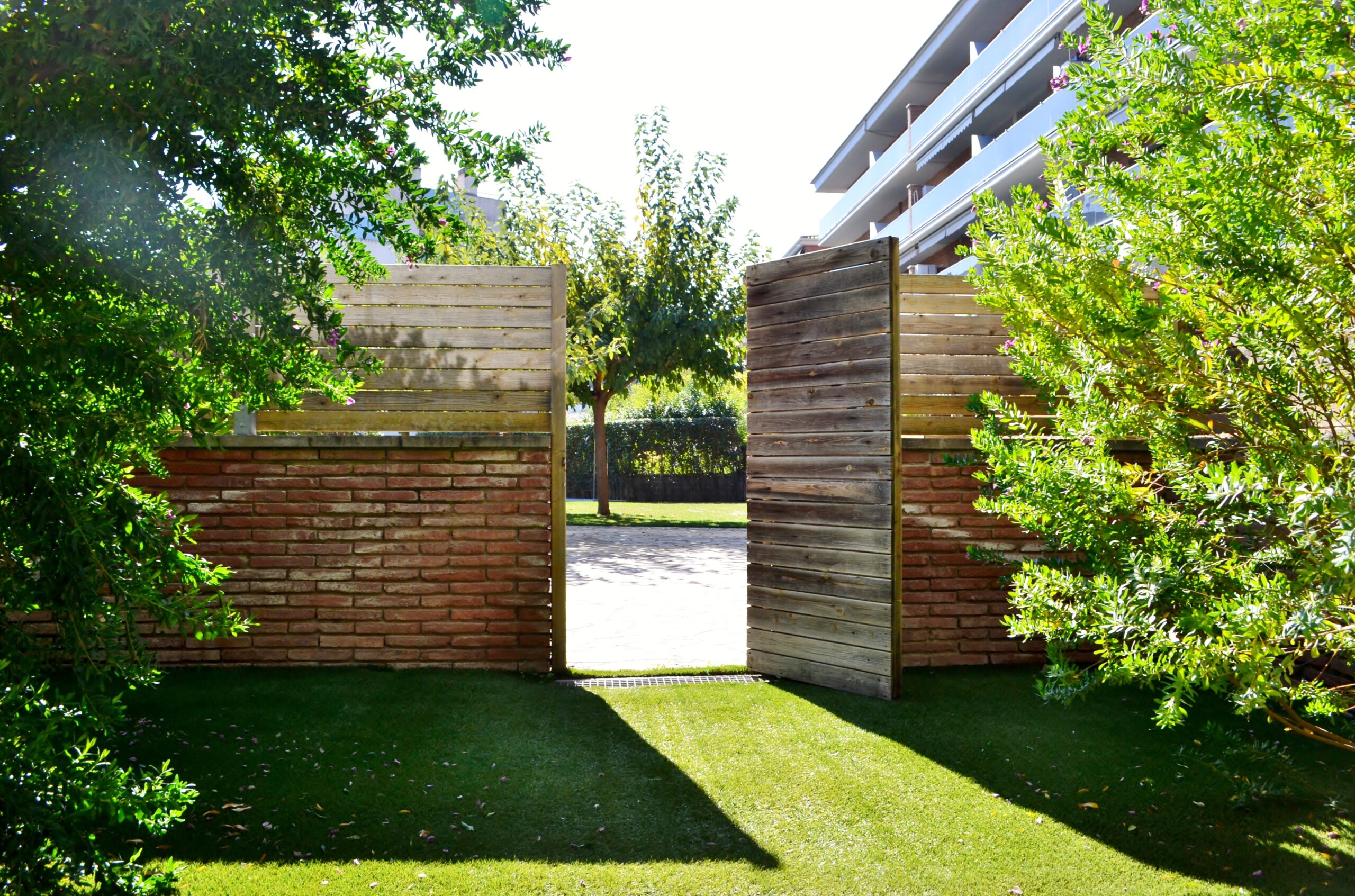 El apartamento cuenta con dos dormitorios, uno con cama doble y otro dormitorio con litera. Cocina americana totalmente equipado, baño completo, amplia sala de estar con salida a terraza- jardín de 40m2 desde esta terraza se puede acceder a la piscina de uso comunitario.