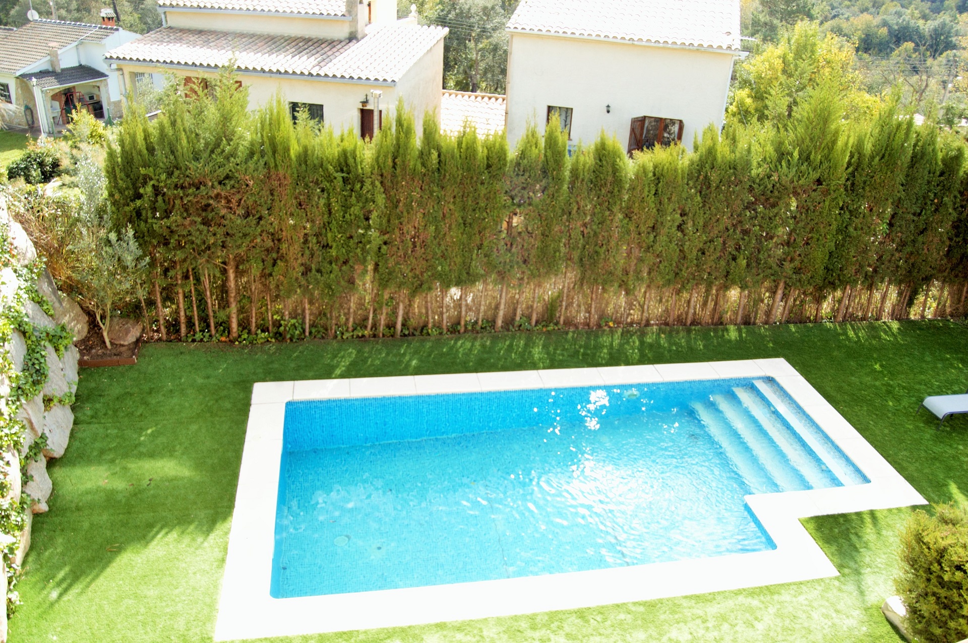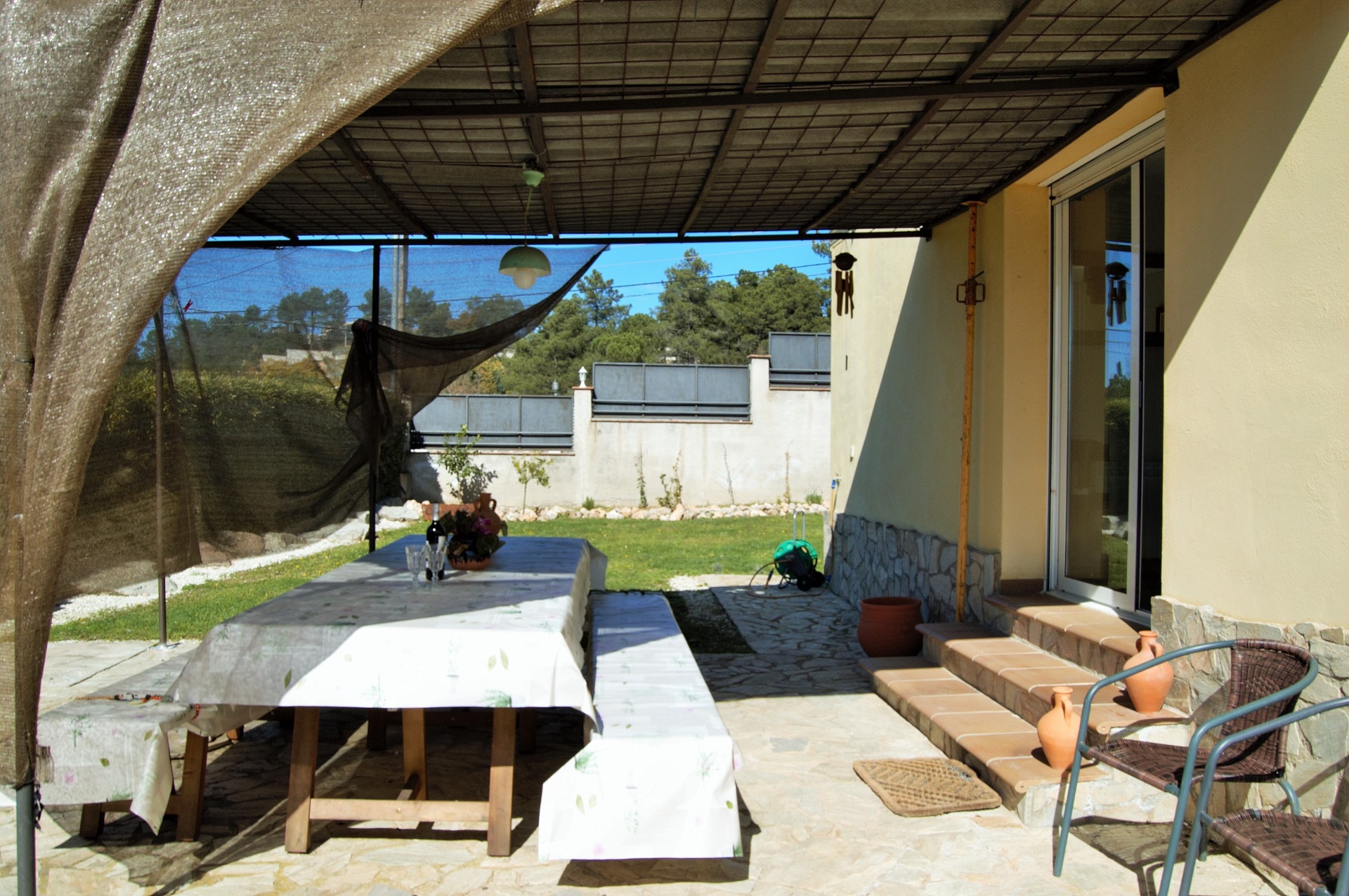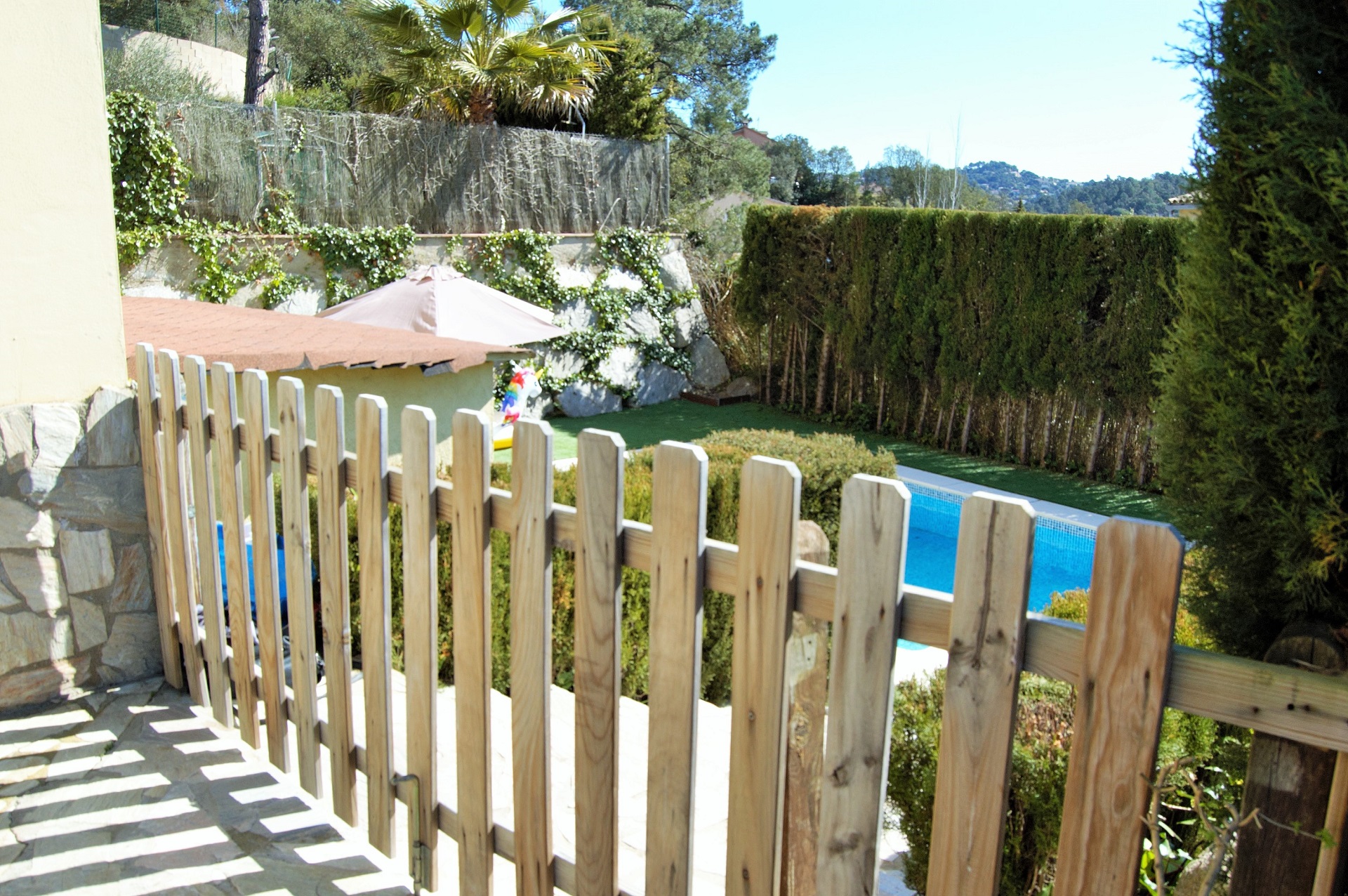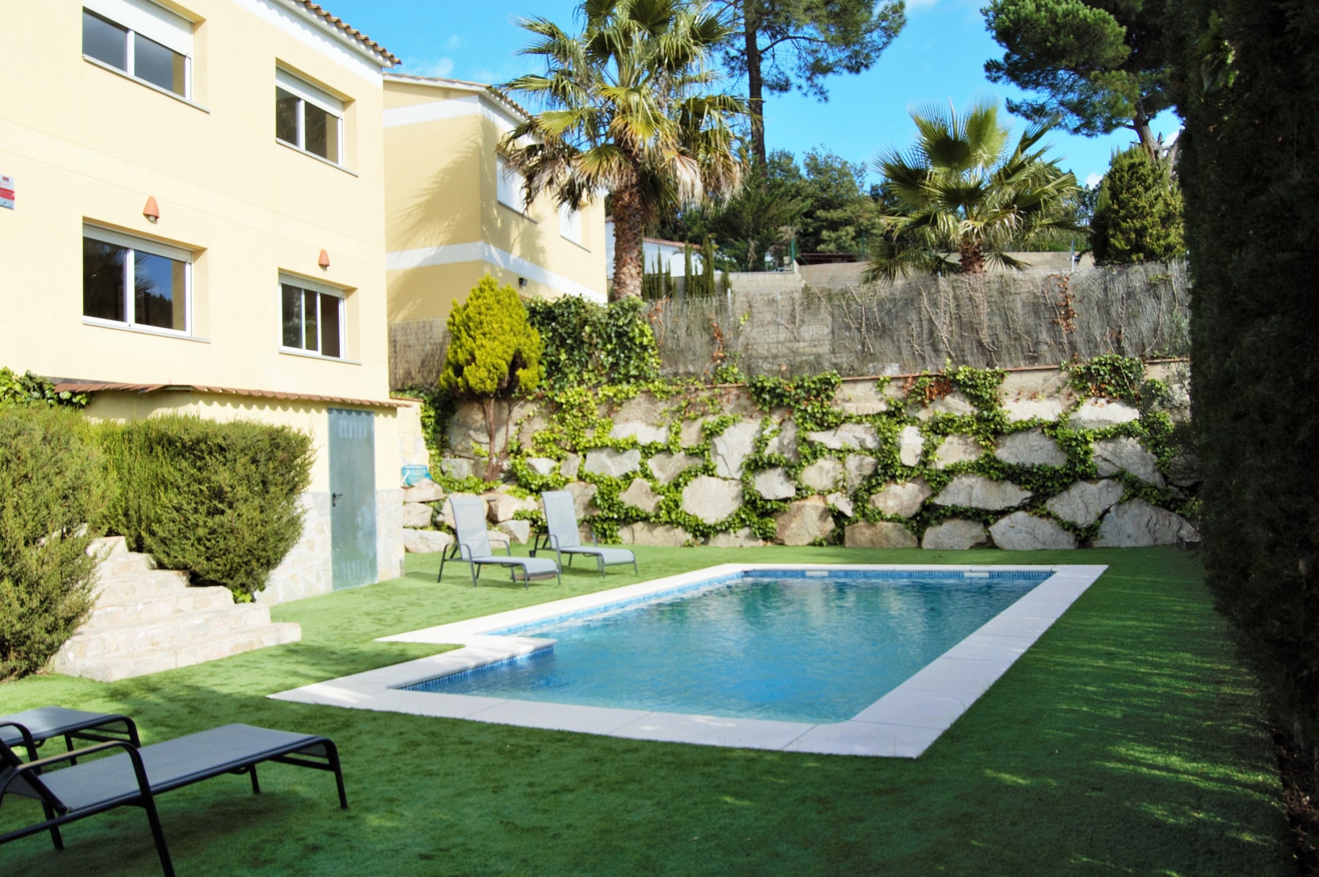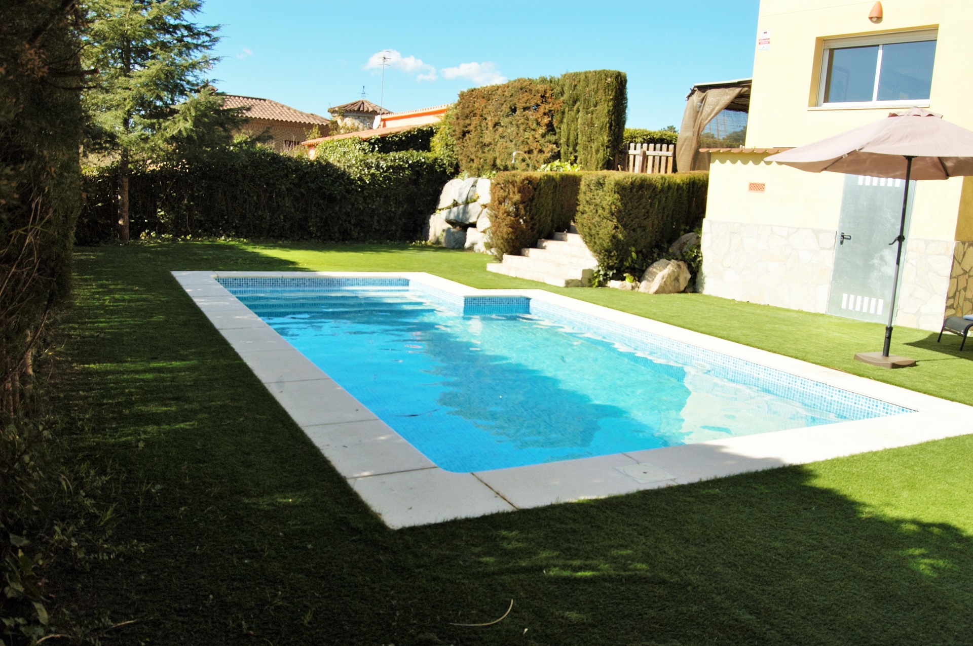 En el primer piso encontramos 3 habitaciones dobles y un baño con bañera. La casa tiene mucho sol y está situada en una zona muy tranquila. Es una casa totalmente equipada con piscina privada con valla para restringir el acceso si vienes con niños. También hay una zona de barbacoa, ideal para unas agradables vacaciones familiares en la Costa