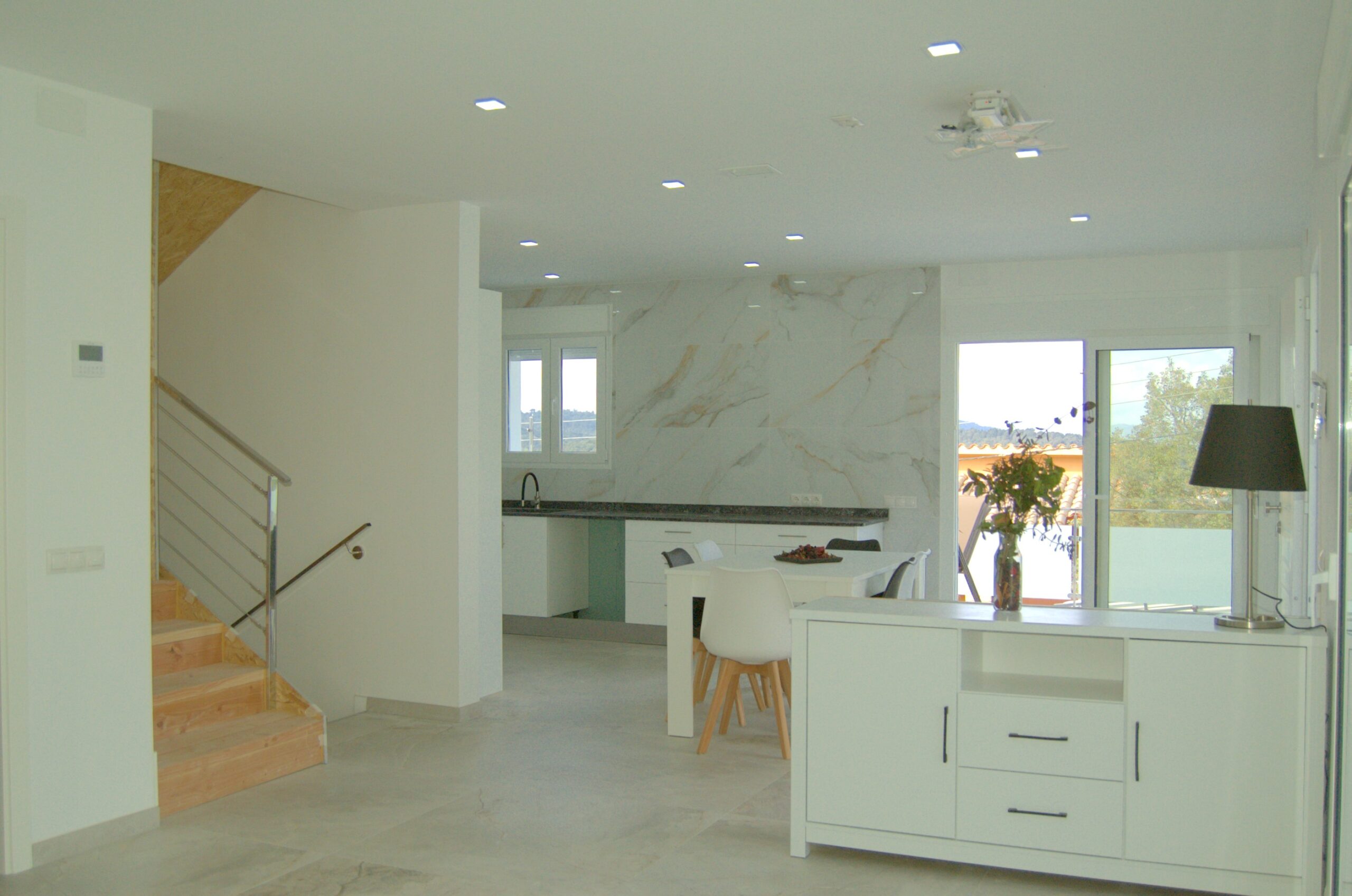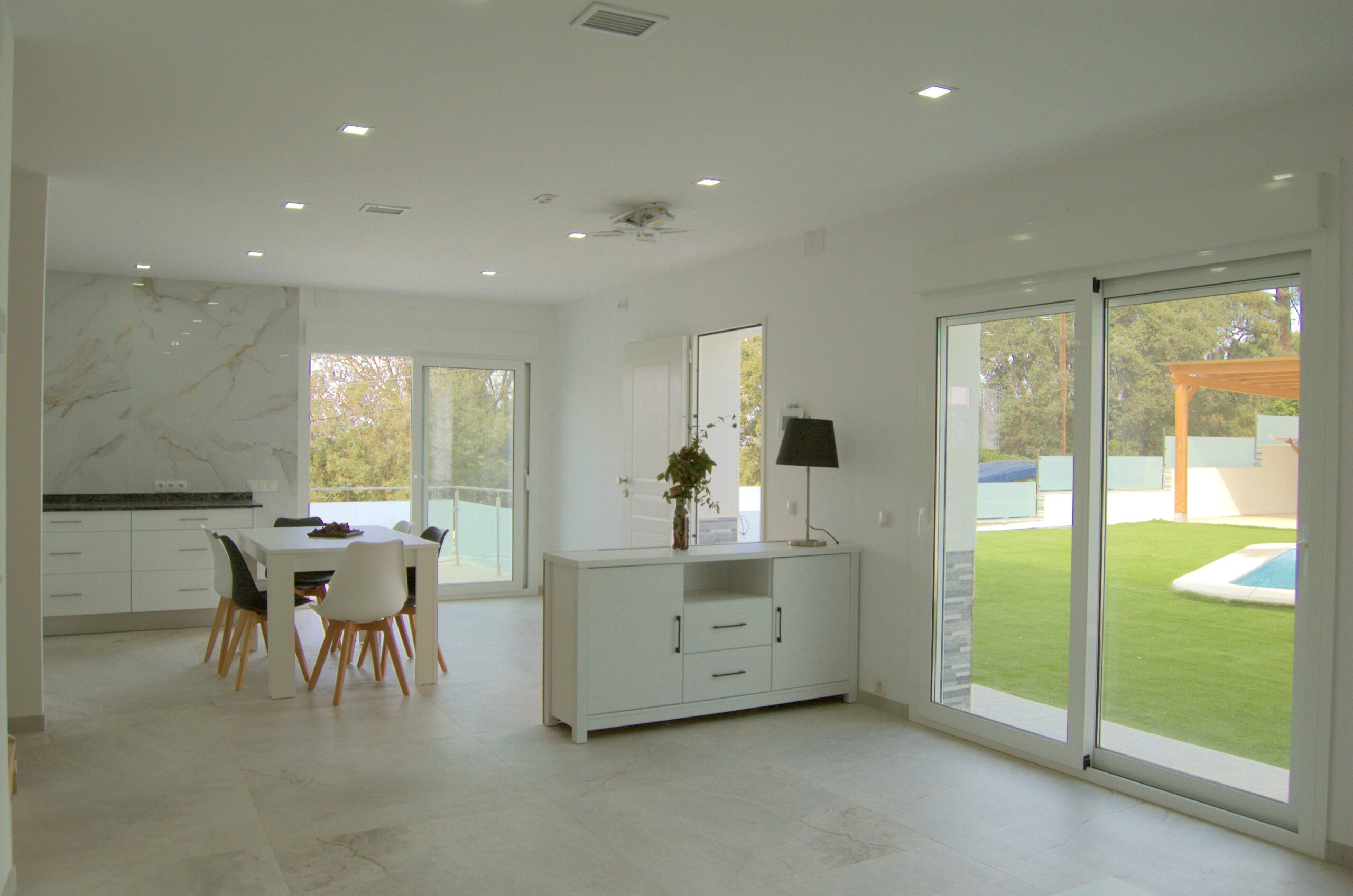 En la planta baja podemos encontrar cocina, totalmente equipada, amplio salón comedor con salida al exterior con piscina y terraza; un dormitorio con cama doble y un baño completo con plato de ducha.