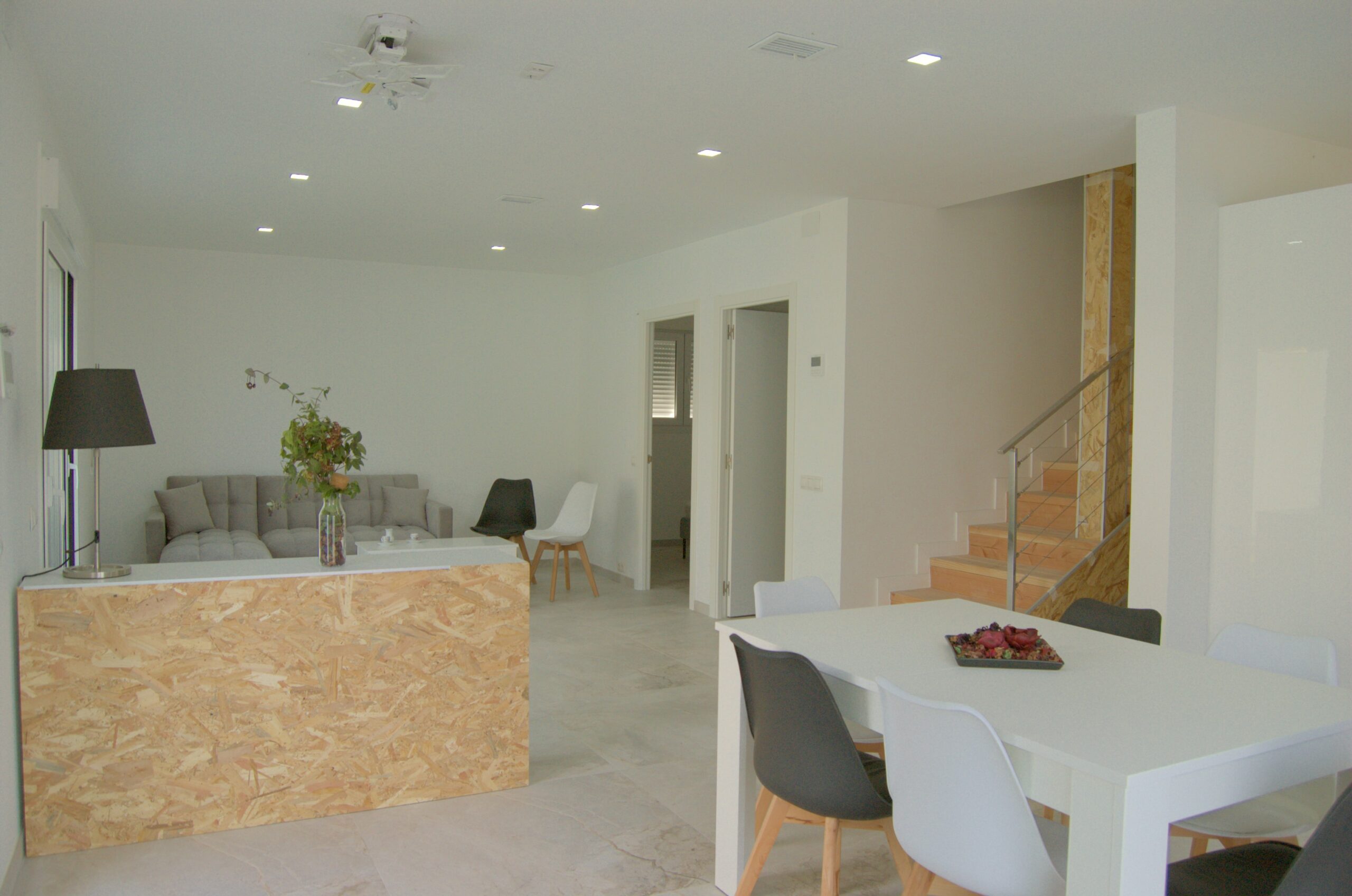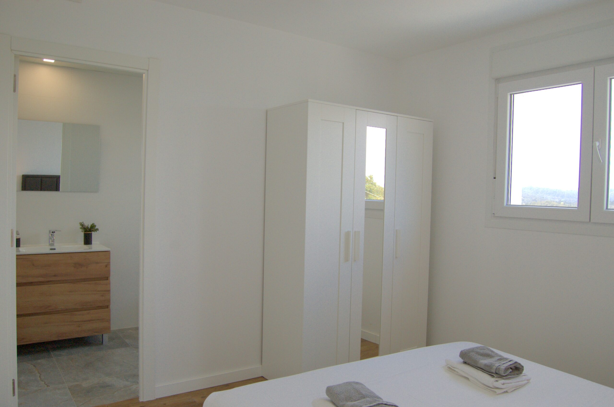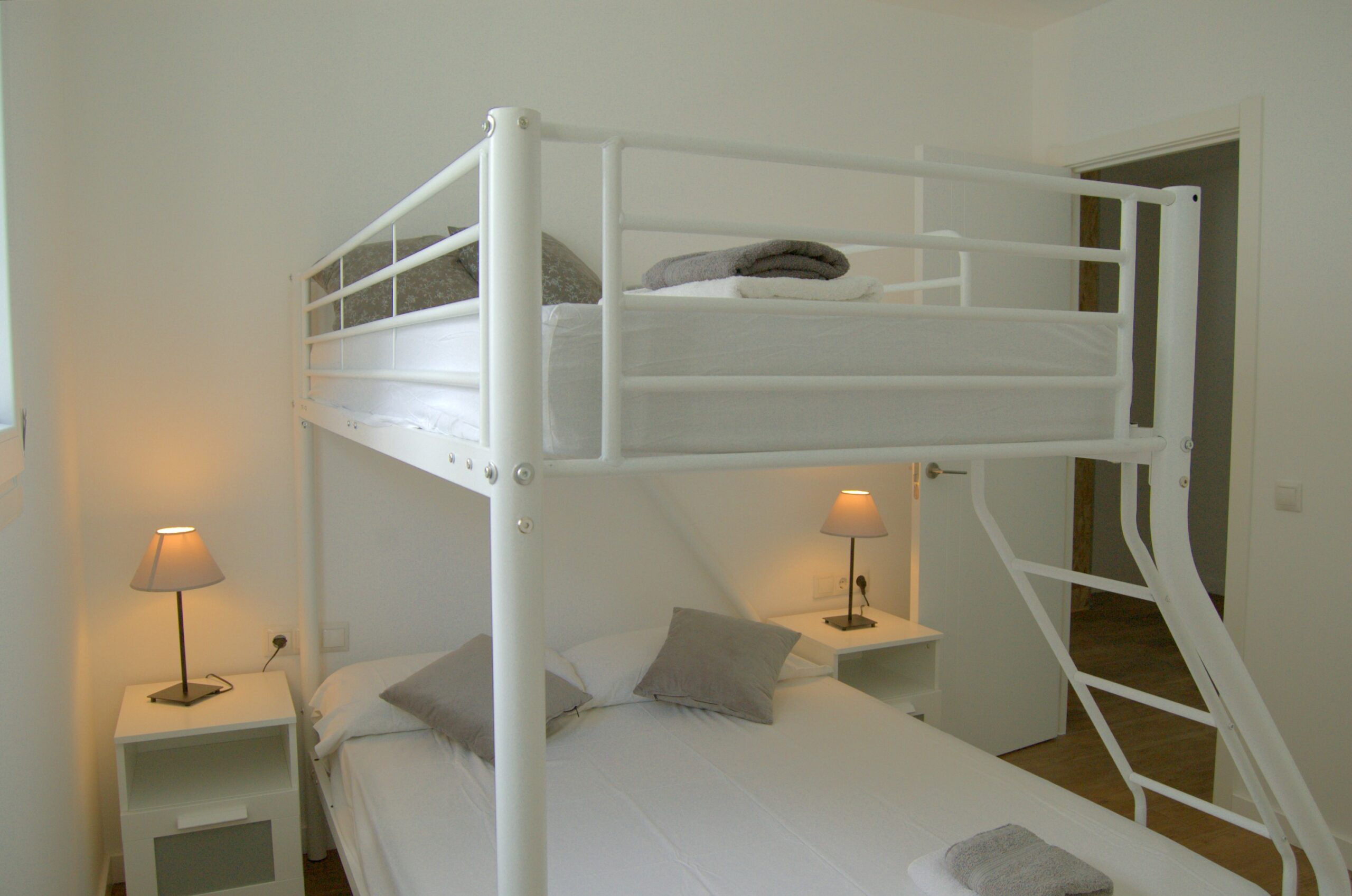 En la planta alta encontramos tres dormitorios, uno con cama doble y baño en suite y salida a la terraza y otros dos con cama litera para 3 personas en cada habitación.