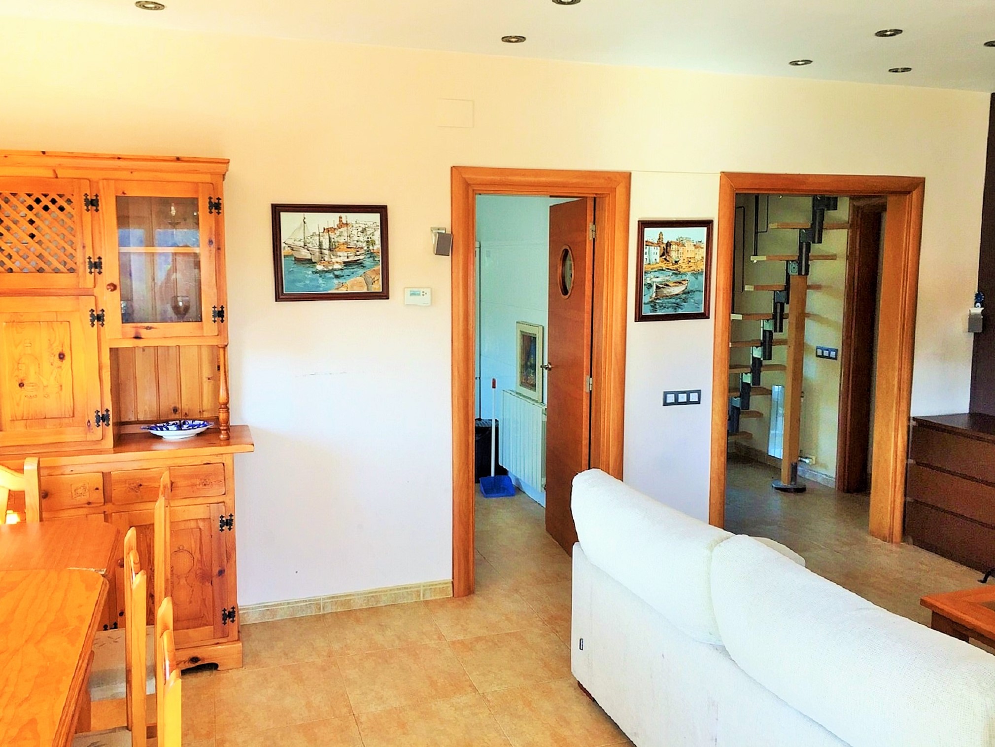 La casa es de dos plantas, en la primera encontramos 3 dormitorios dobles, 2 baños completos uno con bañera y otro con plato de ducha, cocina totalmente equipada, sala de estar con salida a terraza y jardín.